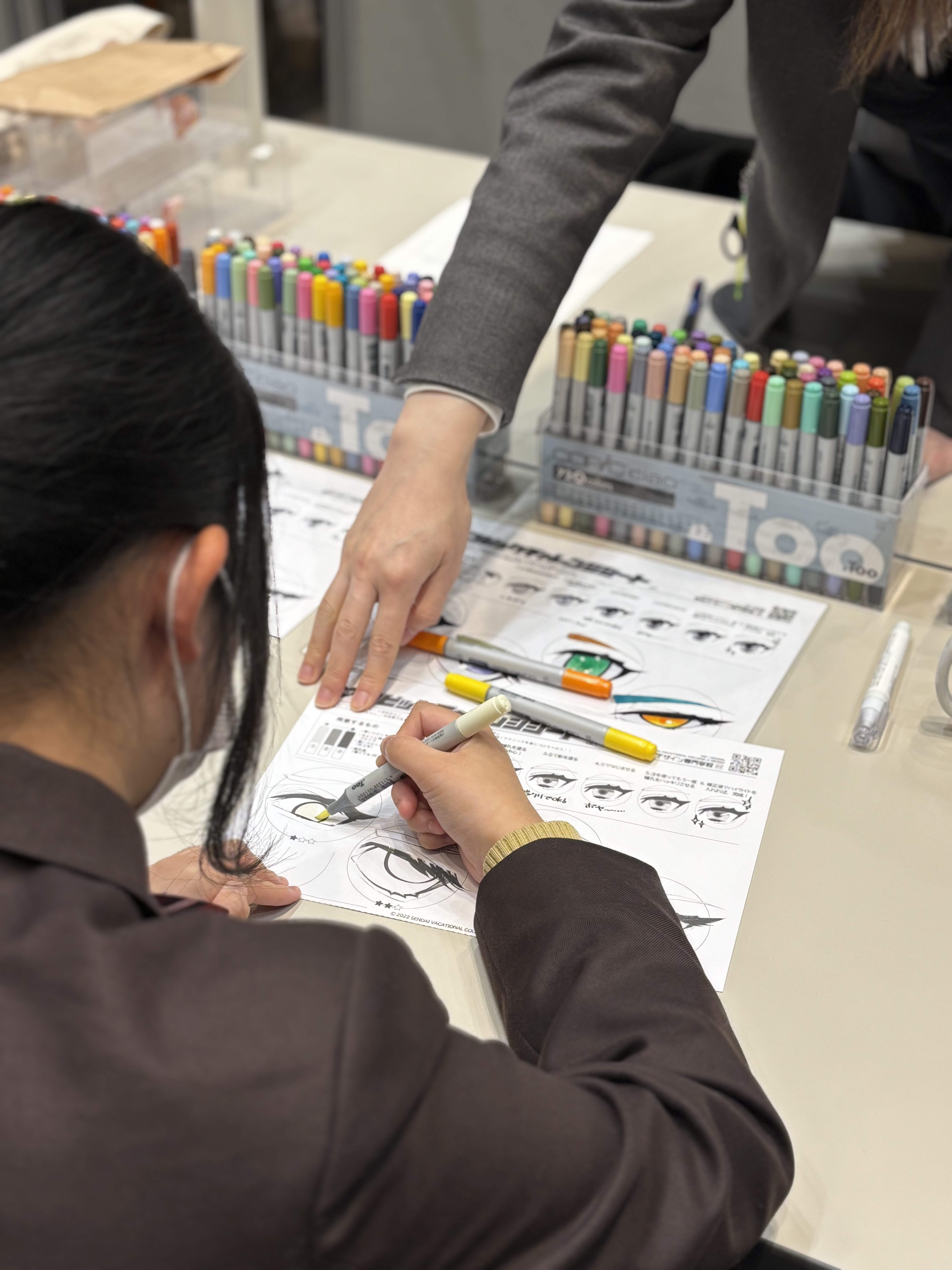 本校では、コピックを使った着彩体験を実施し、多くの高校生のみなさんに体験していただきました。